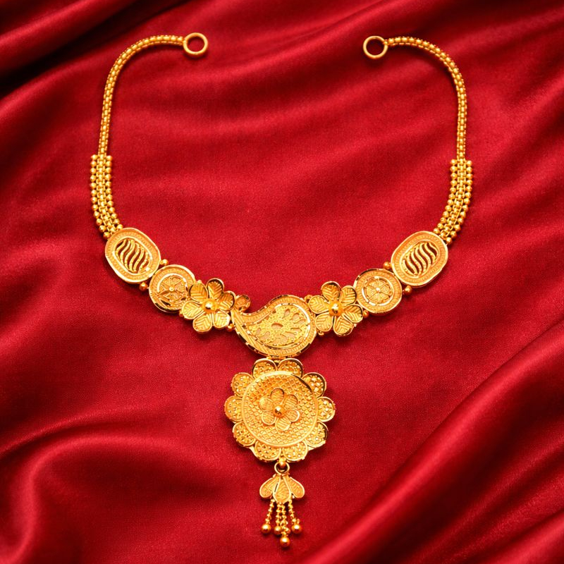 fancy gold necklace in 22kt in floral design .