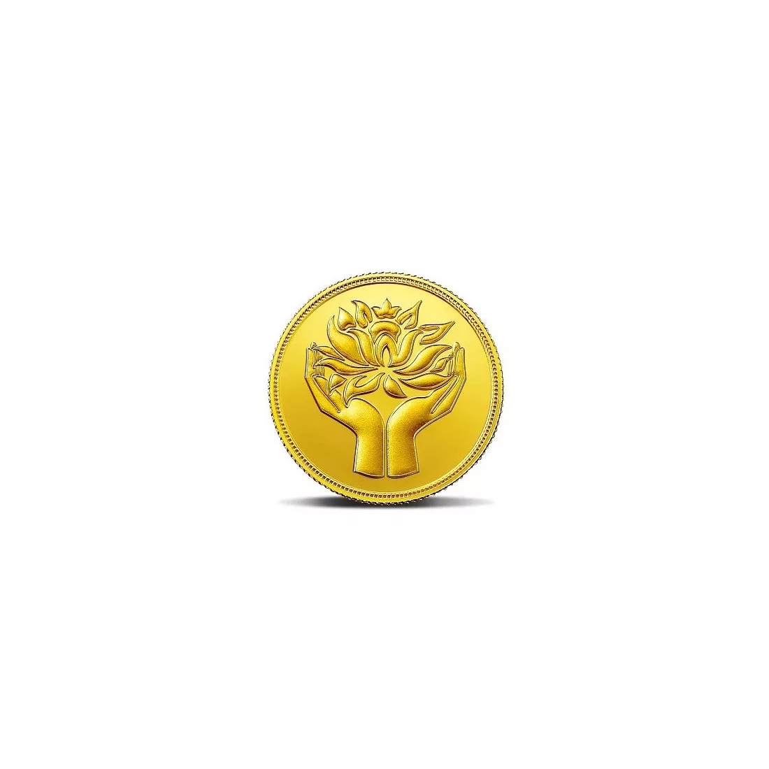 MMTC PAMP 0.5gm Lotus gold coin, crafted in 999.9 purity. Symbolizing strength and longevity, this beautifully designed coin is perfect for gifting, collecting, or investing. Comes with premium purity and authenticity.