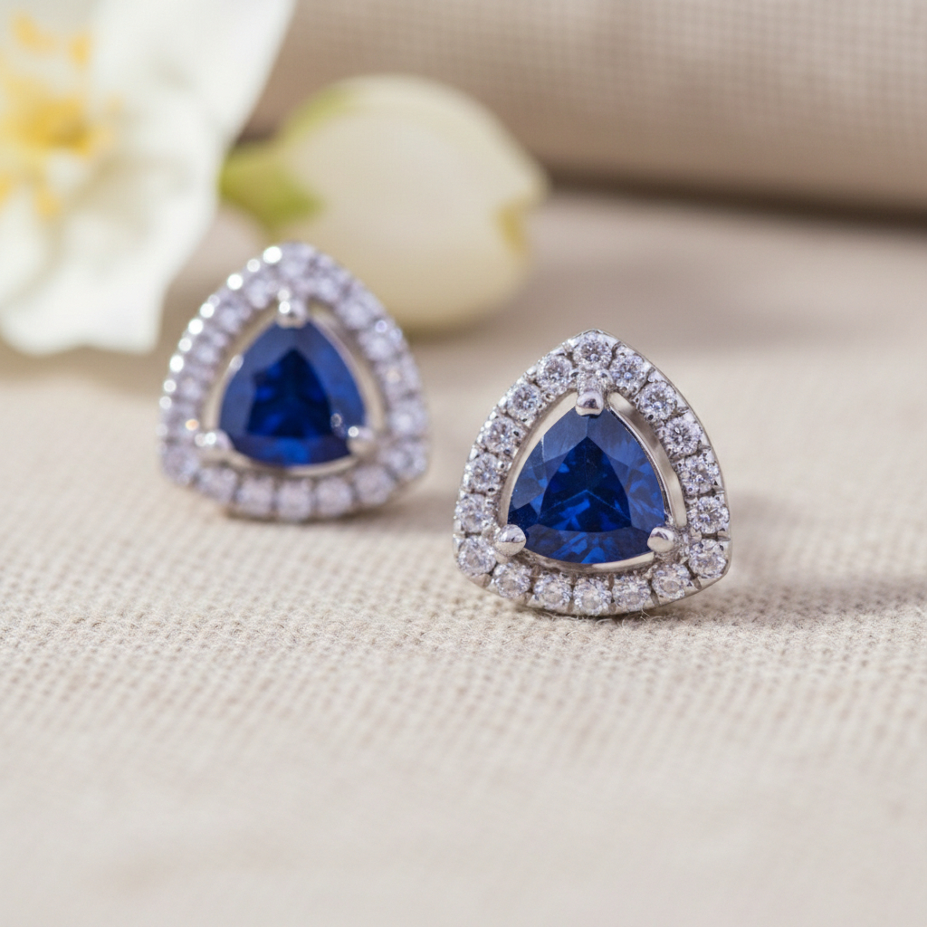Blue Stone Diamond Earrings – 18K Jewellery