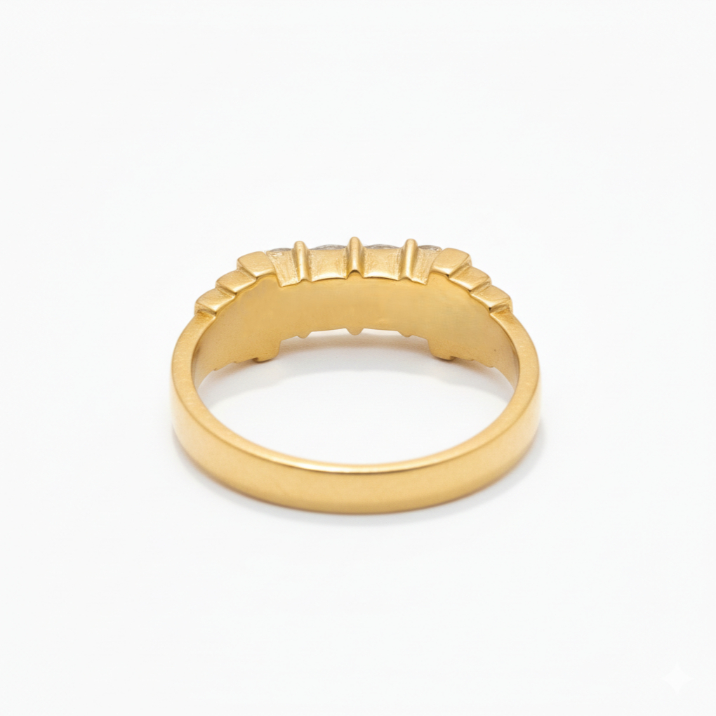 A bold gold ring set with three brilliant stones, symbolizing strength, unity, and timeless style. Its structured design and classic sparkle make it perfect for everyday confidence or special moments.