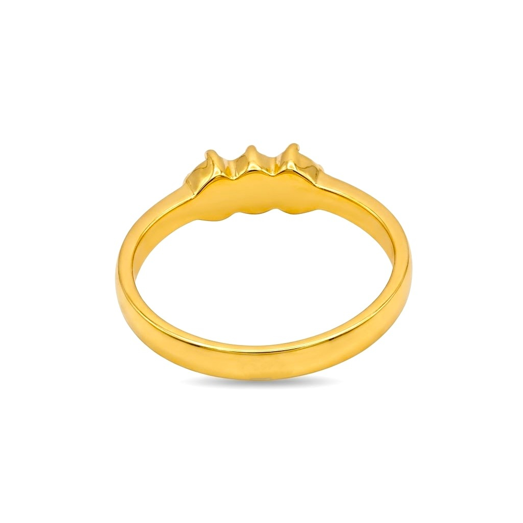 A sleek 22K gold ring featuring three sparkling stones set in a neat row. Its minimal yet elegant design symbolizes balance and timeless beauty. Perfect for daily wear or special moments, this ring adds a subtle shine to any look.