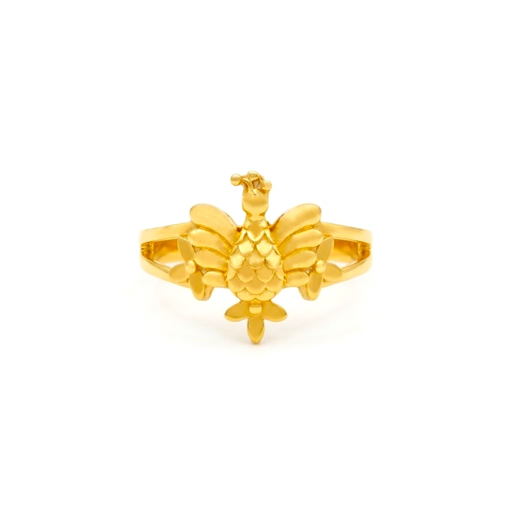 Crafted in 916 gold, this ring showcases a charming bird with wings extending into feathered patterns along the band. A symbol of freedom and beauty, perfect for everyday elegance.
