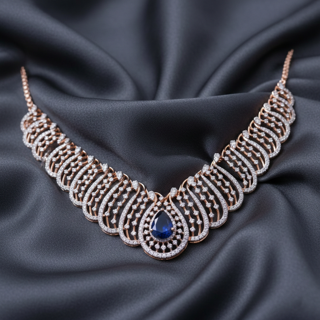Home Diamond Necklace Elegant Diamond Necklace with Blue Stone
