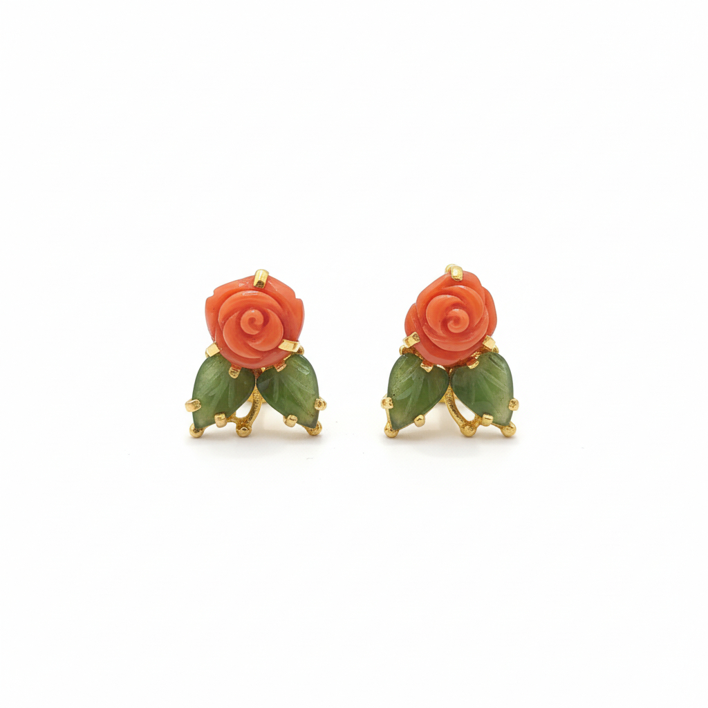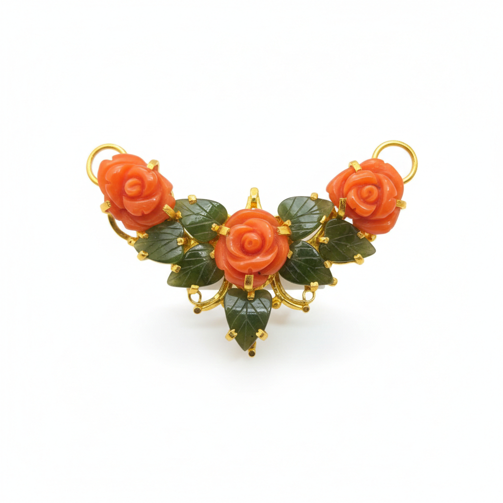 Inspired by blooming roses, this elegant gold set features hand-carved coral rose motifs with lush green leaf detailing. A perfect blend of tradition and charm, ideal for festive occasions and graceful everyday elegance.