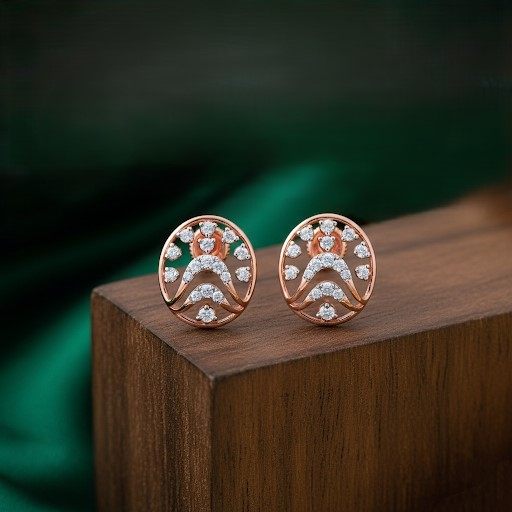 These earrings blend artistry and elegance with an oval rose-gold frame adorned by sparkling diamonds. The delicate arc patterns evoke a starry sky, offering a refined yet radiant look—perfect for both daily sophistication and special occasions.