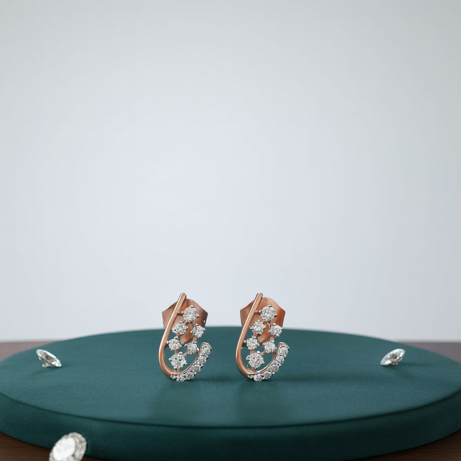 Nature-inspired studs crafted in glowing gold, featuring a graceful vine-like curve adorned with shimmering diamonds. Their organic design blends elegance with a touch of whimsy, making them perfect for both daily wear and special occasions.