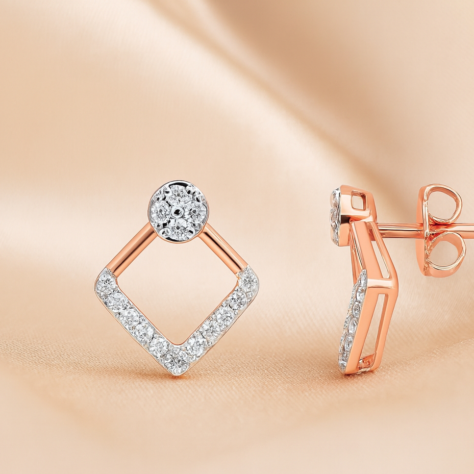 Regal Square Diamond Earrings – 18K Jewellery
