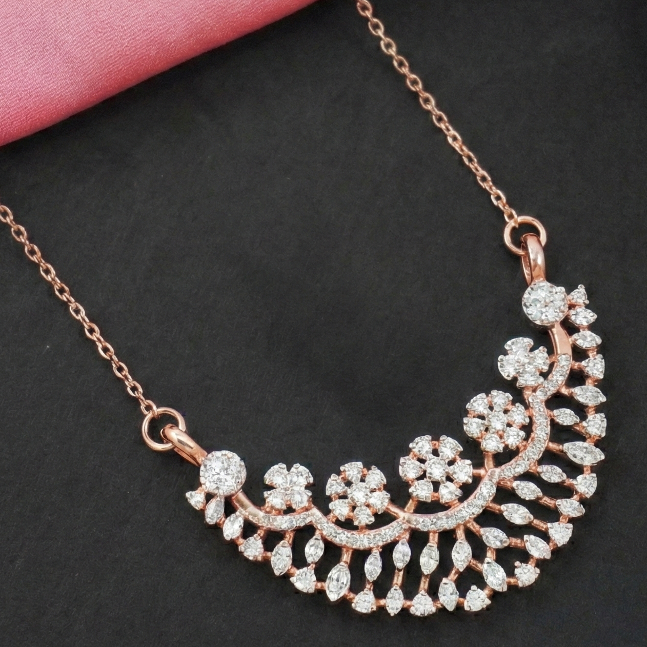 This exquisite rose gold and diamond necklace features a delicate, blossoming design, evoking the soft glow of dawn. Its intricate floral motifs, encrusted with brilliant diamonds, create a captivating statement piece perfect for special occasions.