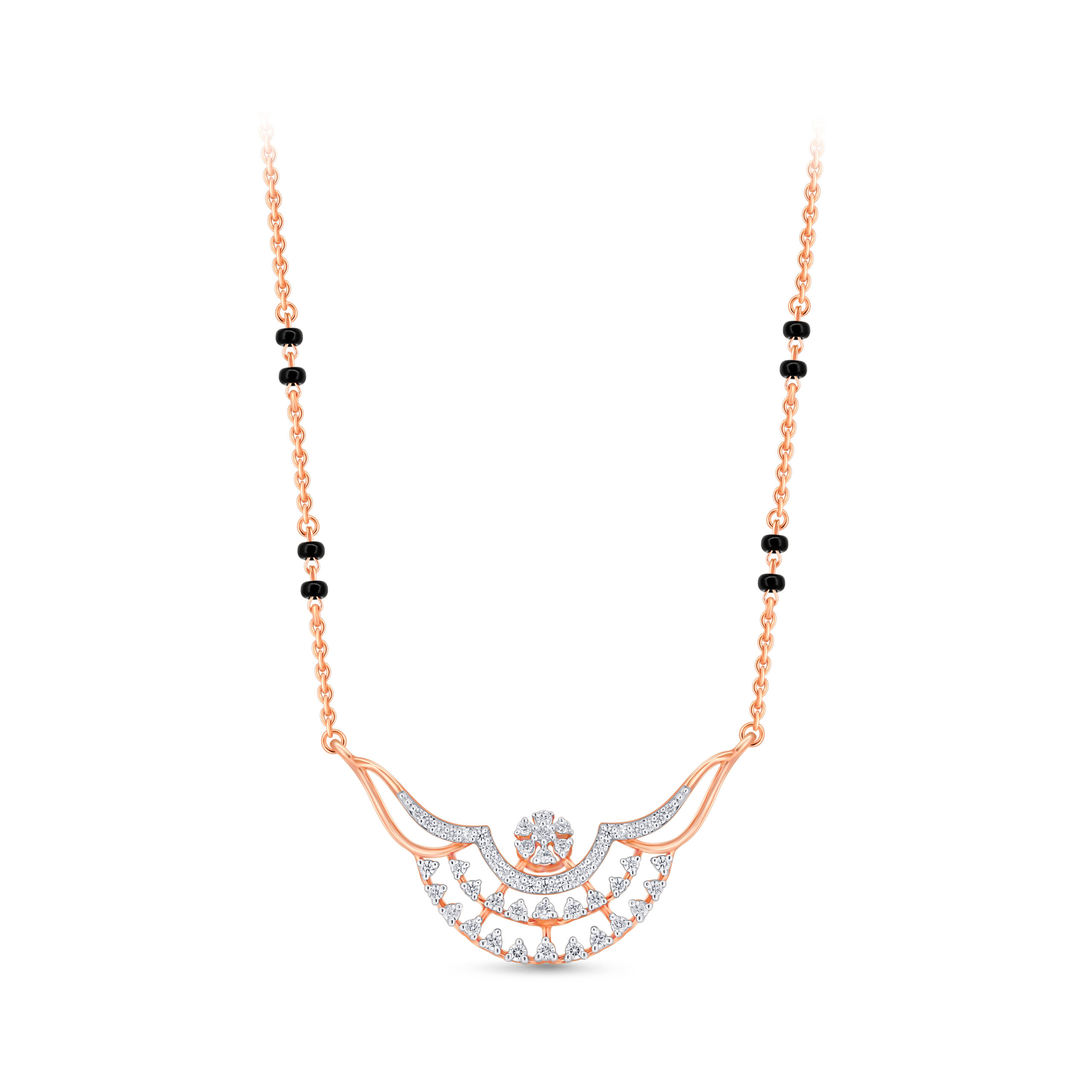 A captivating mangalsutra design featuring a delicate floral motif, symbolizing everlasting love and prosperity. Crafted with intricate detail and sparkling diamonds , it blends traditional elegance with modern sophistication, making it a timeless piece for the contemporary bride.