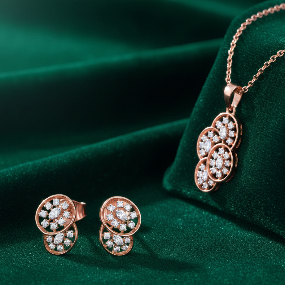 Arctic Bloom Diamond Pendant Set – 18K Jewellery