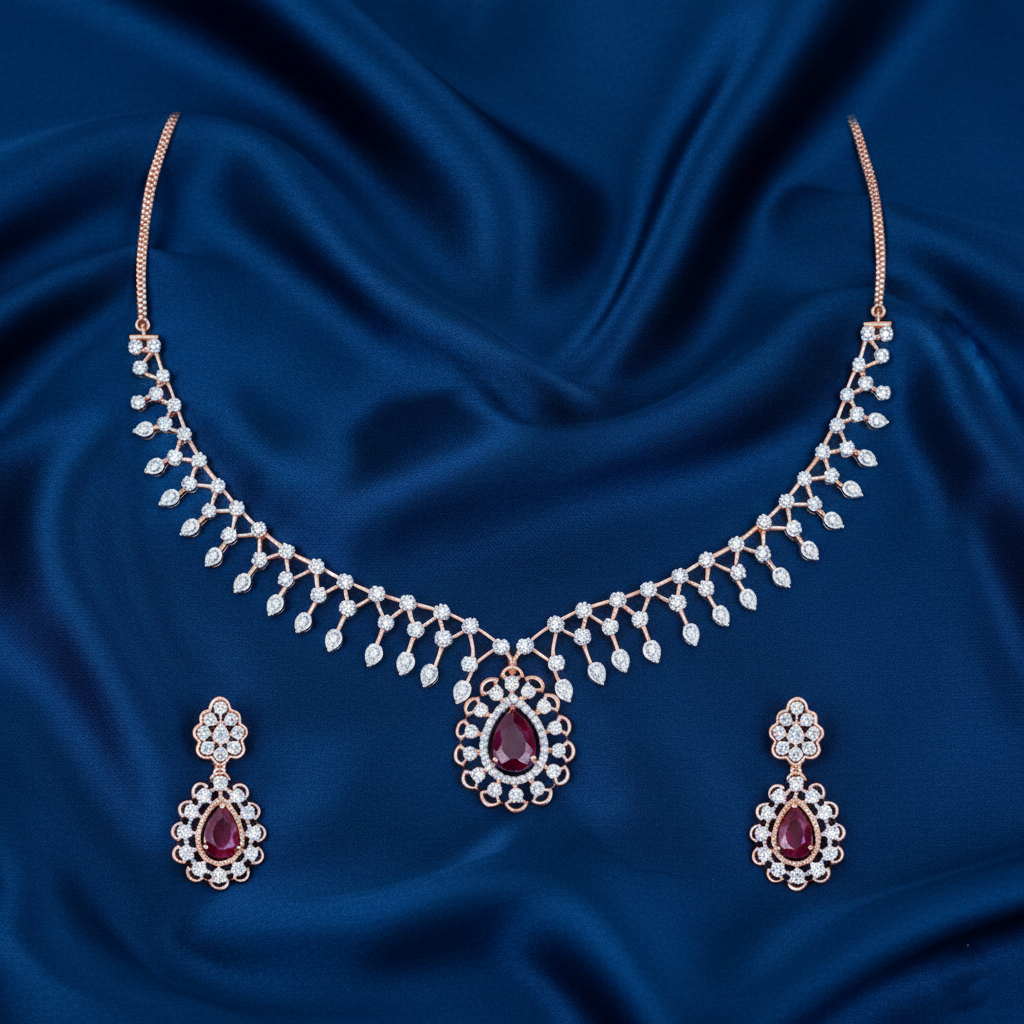 Home Diamond Necklace Royal Ruby Drop Diamond Set – 18K Jewellery
