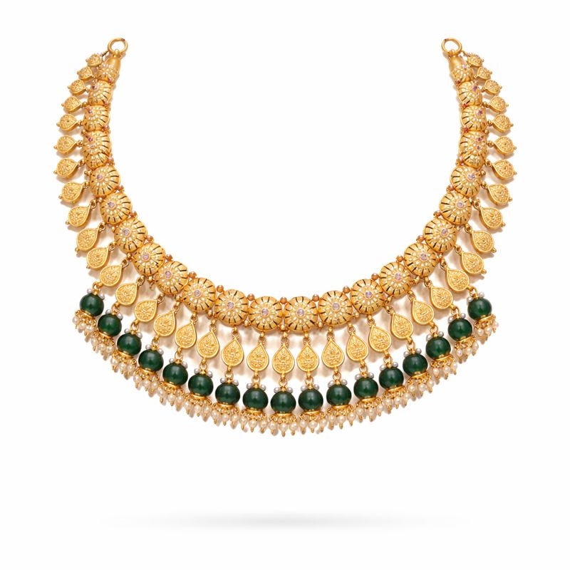 Gold 22kt Necklace with Natural Green Stones