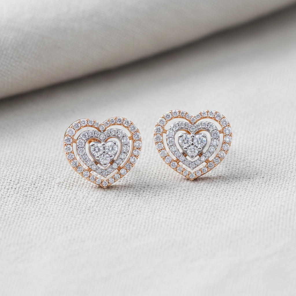 Elegant heart-shaped diamond studs in a sleek gold setting, symbolizing love and grace. Crafted for maximum brilliance and everyday wear, these timeless earrings blend romance with classic sophistication. Perfect as a heartfelt gift or cherished personal treasure.