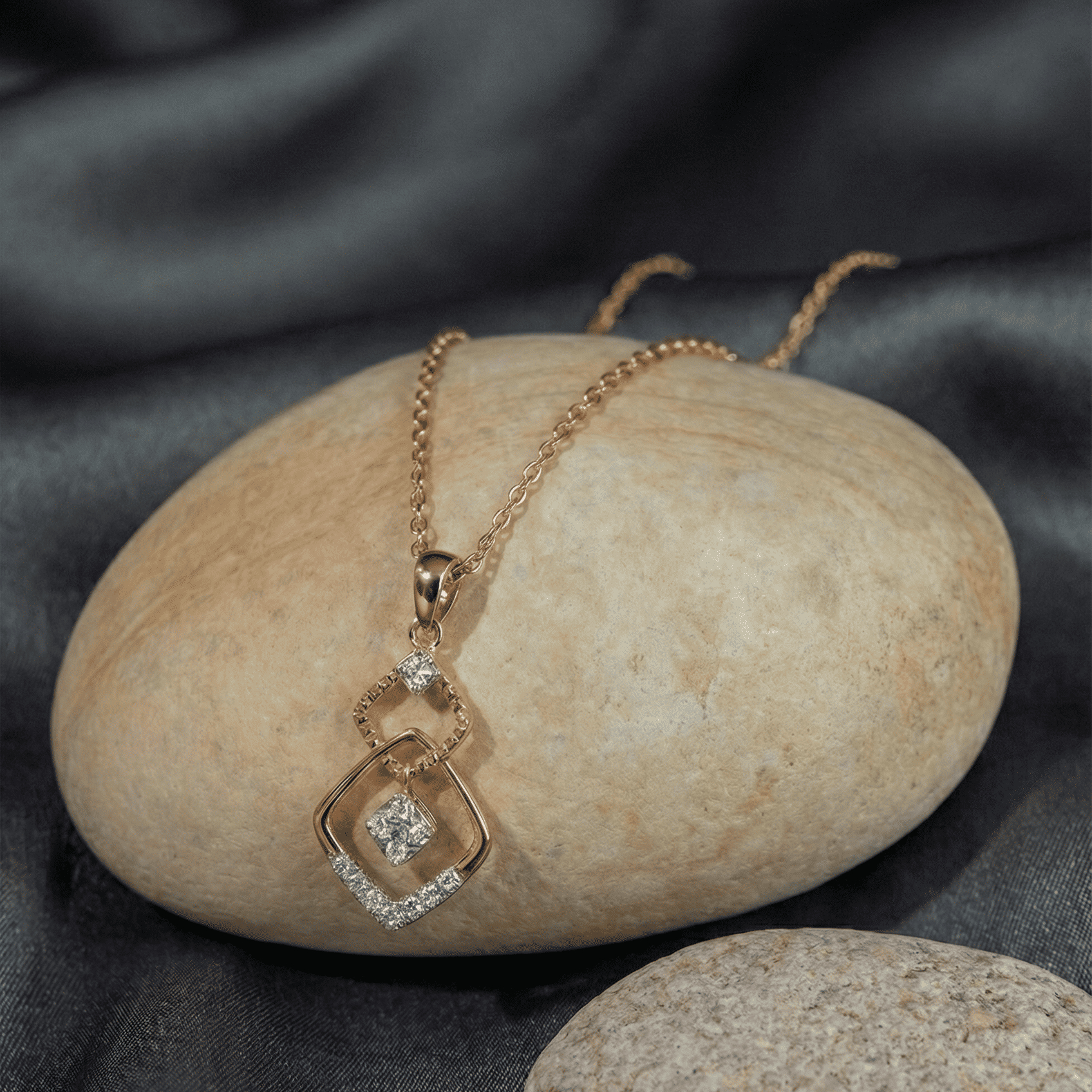 This exquisite pendant features layered diamond-studded squares gracefully. The fluid symmetry and sparkling accents create a modern yet timeless charm, perfect for adding a touch of sophistication to any outfit, day or night. Please note, this listing is for the pendant only.