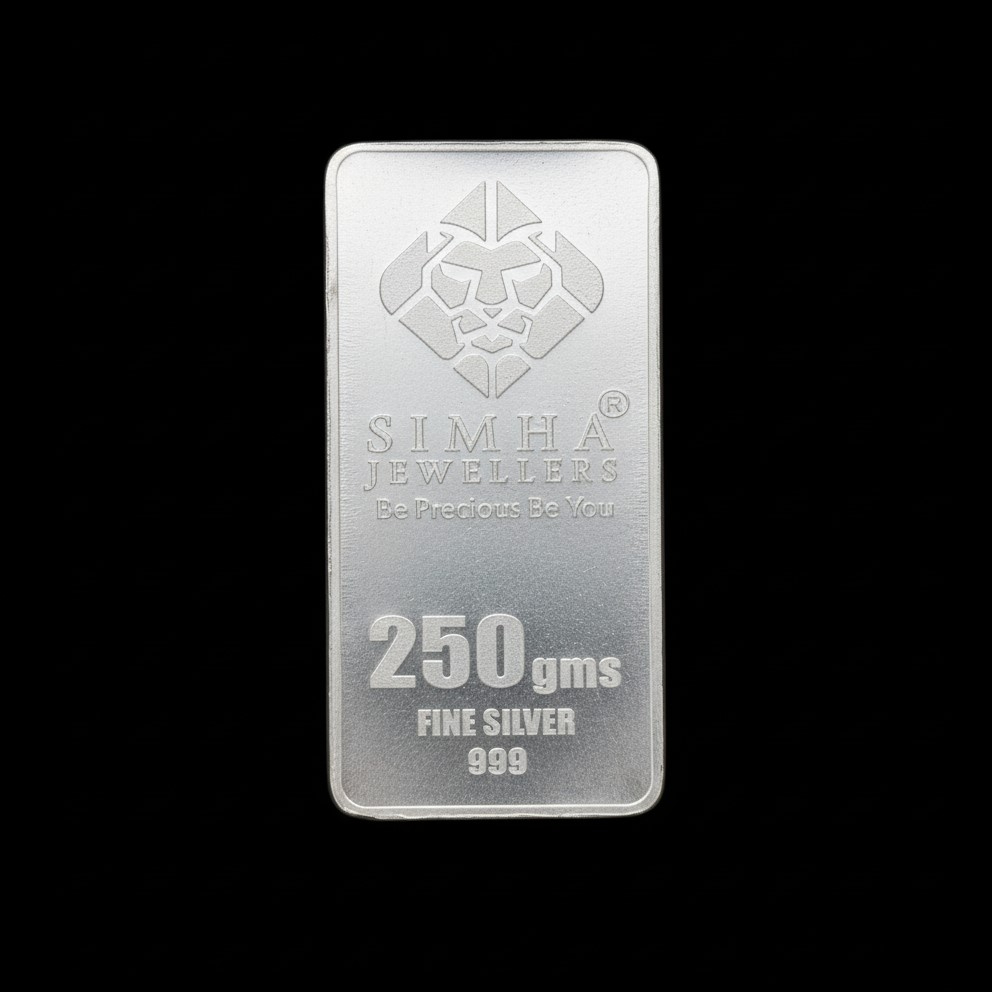 Experience timeless purity and value with Simha Jewellers 250-gram Silver Bar, this bar is ideal for both investment and gifting purposes. Each bar is certified for authenticity and quality.. A perfect blend of trust, craftsmanship, and lasting worth. Note – (Delivery after 5th Nov-25)