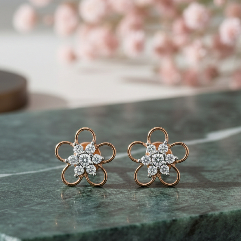 Graceful floral earrings crafted with a radiant gold-tone finish and shimmering details. These elegant studs bring a fresh, feminine touch to any look—perfect for everyday wear or special occasions. Lightweight, timeless, and beautifully designed to bloom with you
