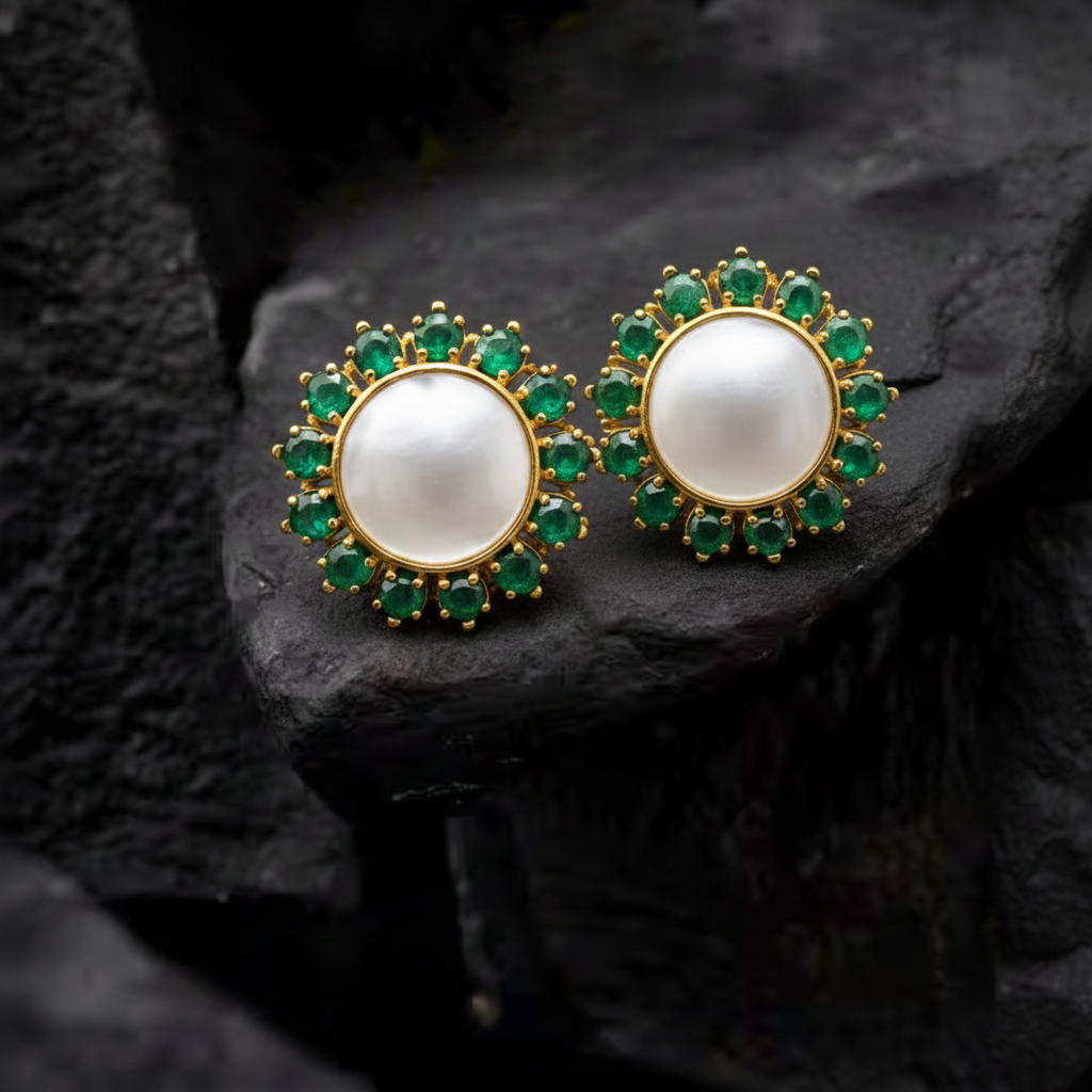 Elegant round stud earrings crafted in polished gold, featuring a delicate open-circle design accented with finely set gold detailing. Simple yet graceful, these studs offer a timeless charm that pairs beautifully with everyday wear as well as traditional outfits.