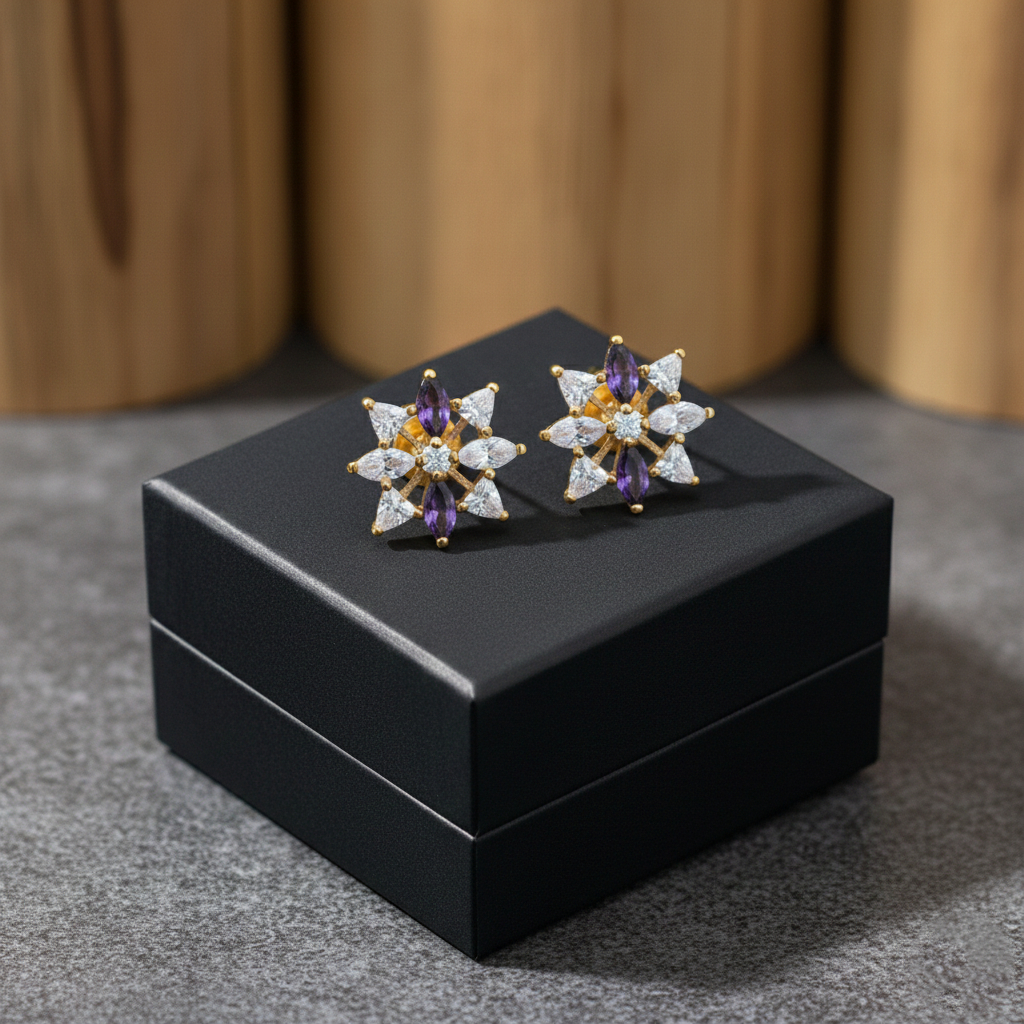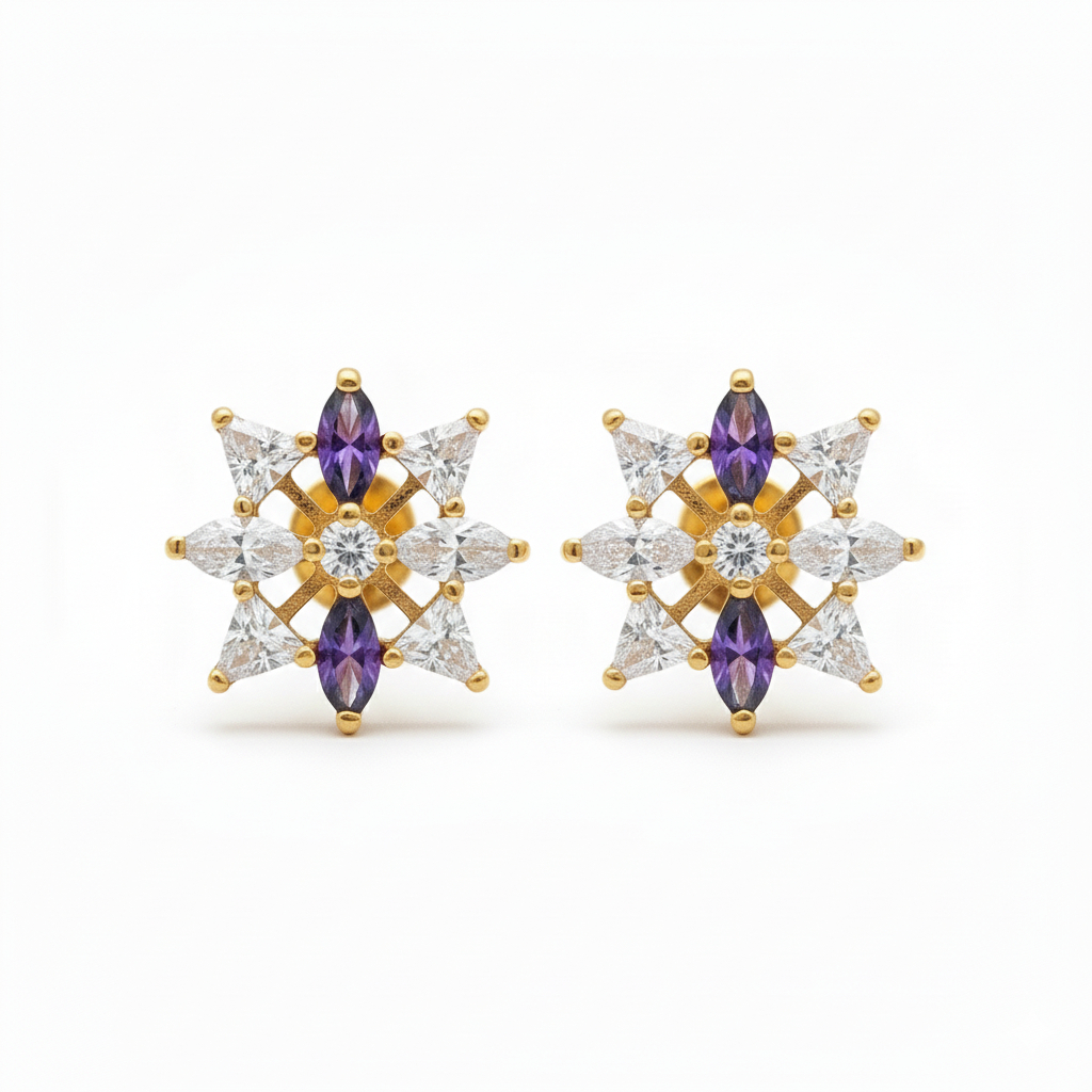 Purple Prism Bloom Gold Studs – 22K Jewellery