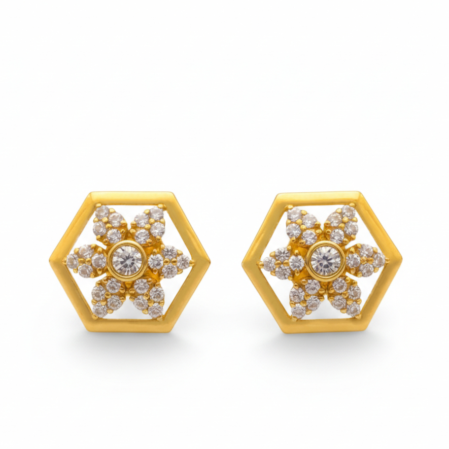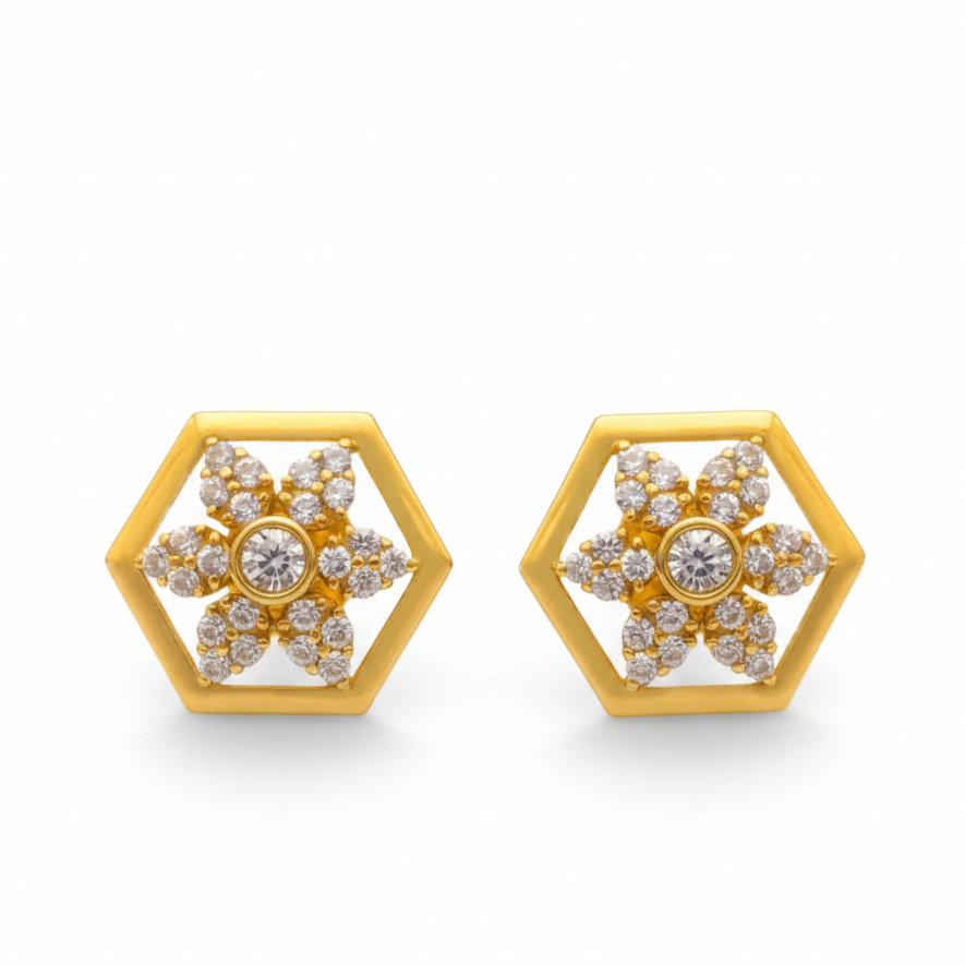 GOLDEN PETAL HEX CZ STUDS- 22K JEWELLERY