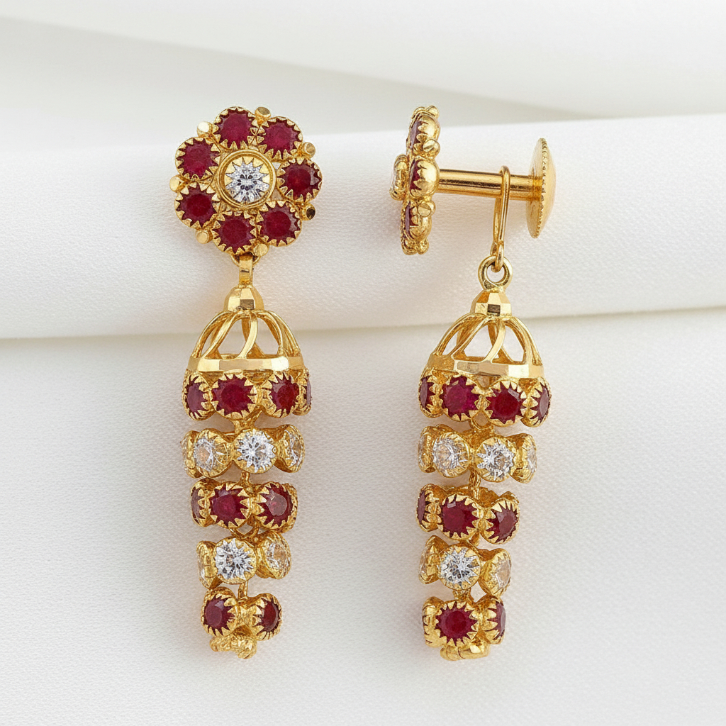 Home Festive Season Crimson Jharokha Drop Gold Earrings – 22K Jewellery