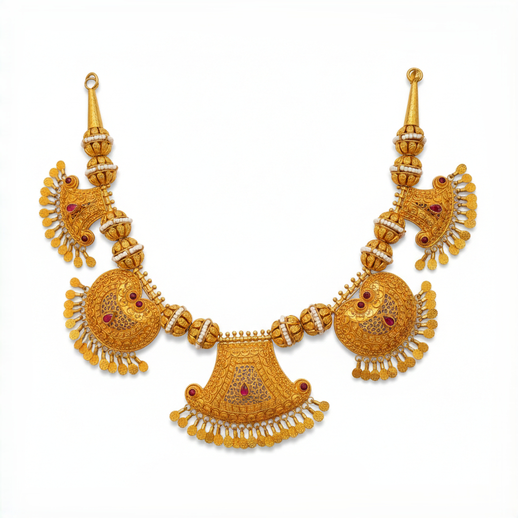 ORNATE FLORAL PEACOCK GOLD CHOKER - 22K JEWELLERY