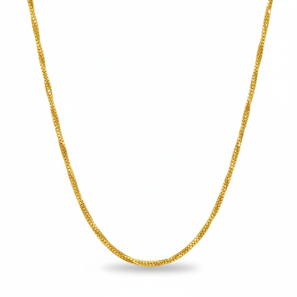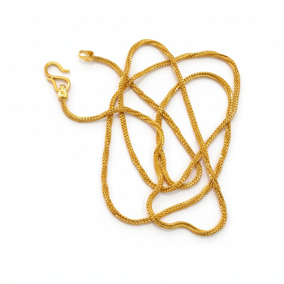 Designed with a delicate mesh-style pattern, this gold chain offers durability with refined shine. A versatile piece that pairs beautifully with pendants or looks graceful when worn solo.